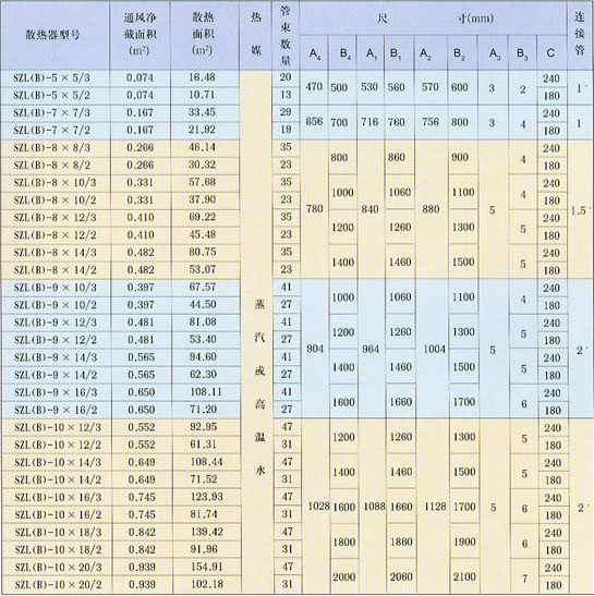 SZL(B)型翅片管散熱器基本參數(shù)表